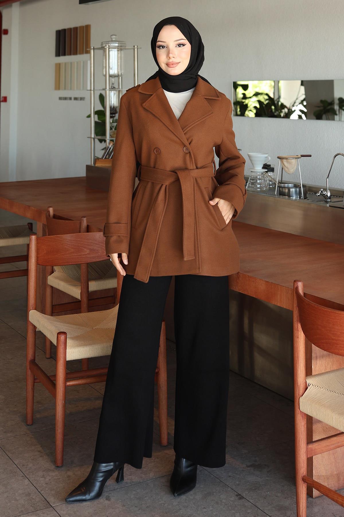 Düğme Detaylı Kaşe Kaban Kahverengi 19274 (19274-5-38)