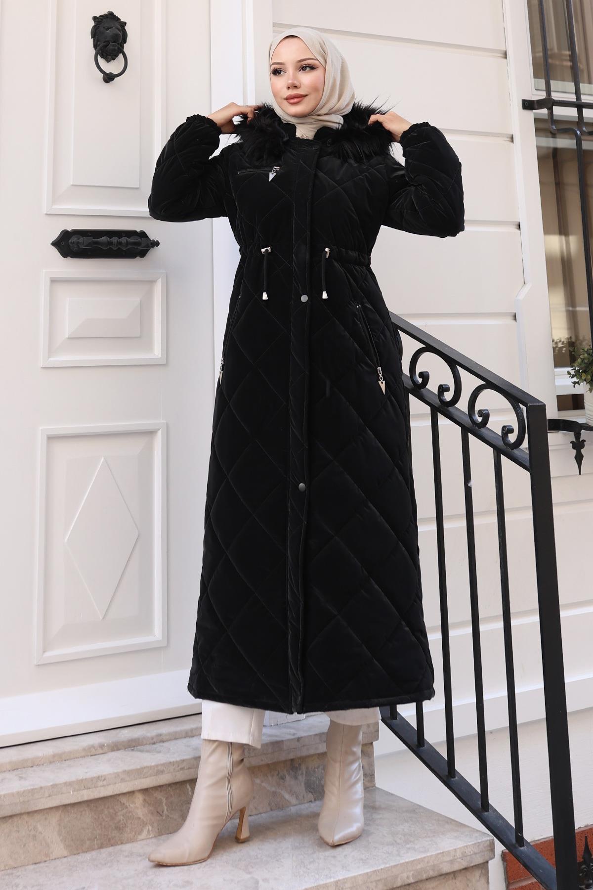 Fermuarlı Kapşonlu Kapitone Mont Siyah 19277 (19277-1-38)