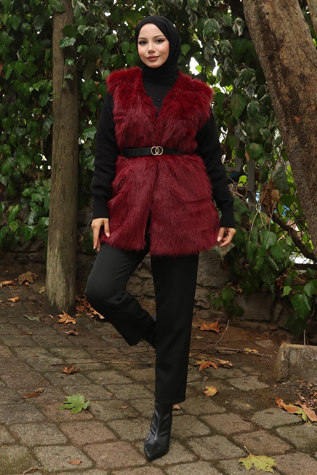 Kemerli Kürklü Yelek Bordo 19372 (19372-2-38)