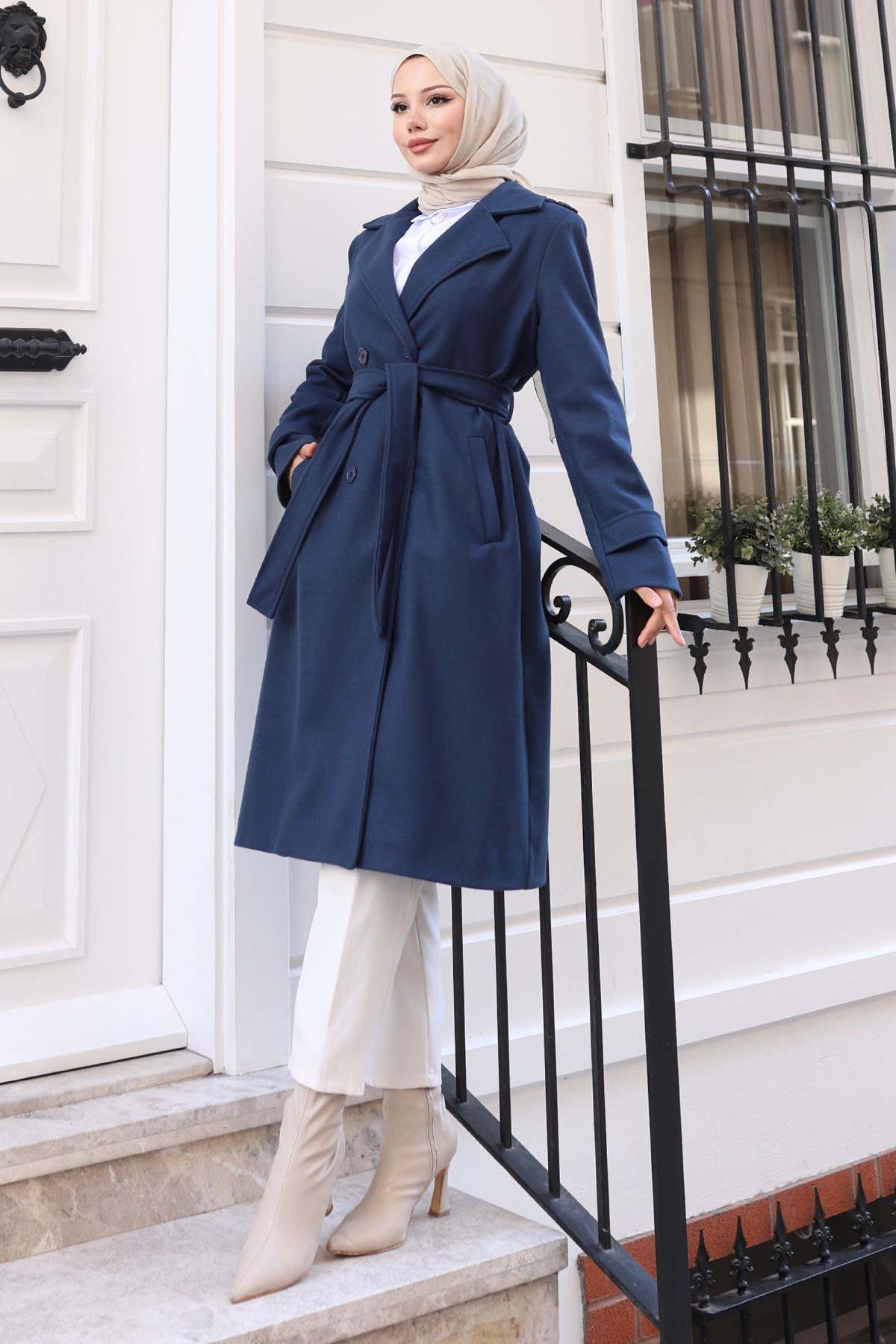 Kuşaklı Kaşe Kaban Lacivert 19271 (19271-2-38)