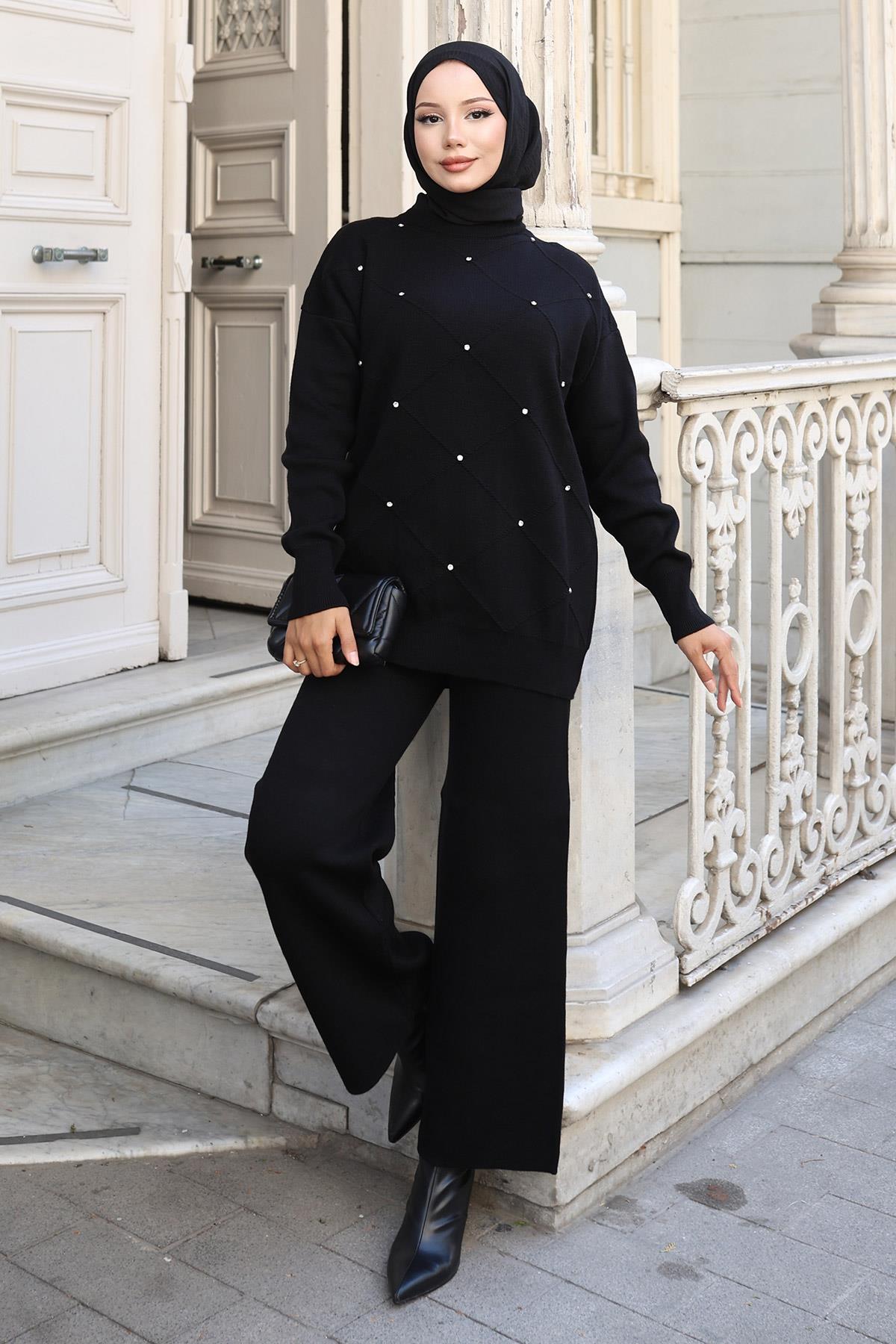 Taş Detaylı Triko Takım Siyah 6148 (6148-1)
