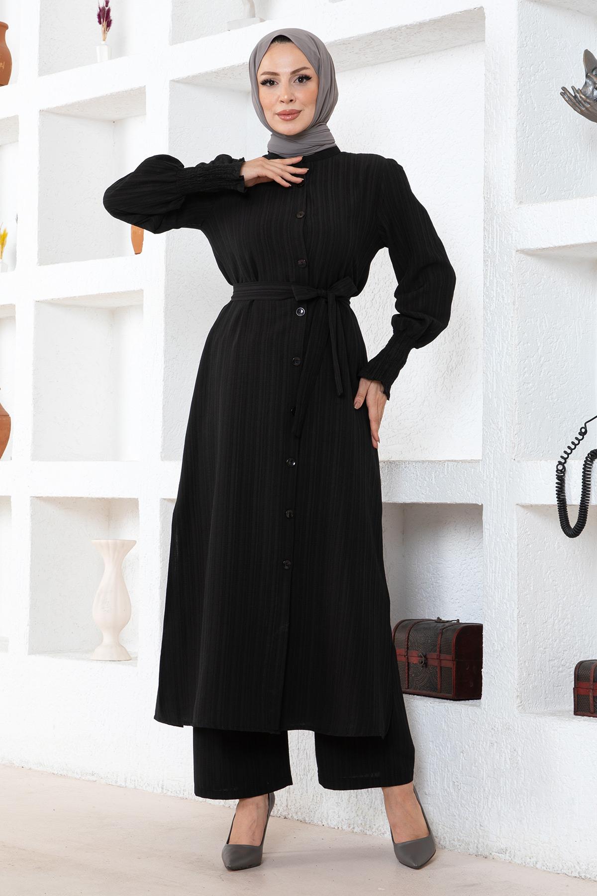 Ürün Özelliği : Yeni sezon tesettür moda ürünüdür. Astarsızdır. Bir beden büyük almanız önerilir. Dar kalıptır. Tunik, önden kullanılabilir düğmeleri bulunmaktadır. Kemeri seyyardır. Yırtmaç detaylıdır. Pantolon, beli lastiklidir. Ürün renginde konsept çekimlerinden dolayı ton farklılığı olabilir.